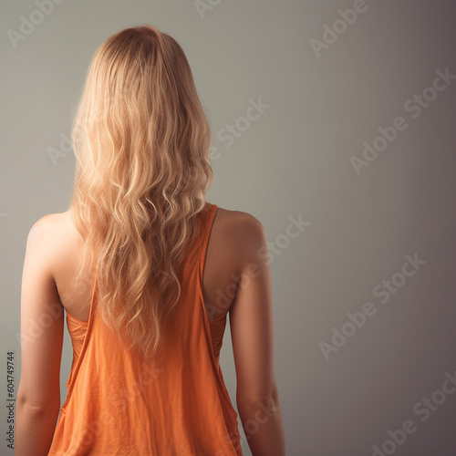 Young beautiful slim woman, view from the back and isolated background. Generative AI