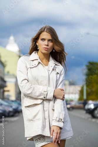 adult, attractive, beautiful, blond, brunette, casual attire, caucasian, cloak, close, complexion, elegance, european, face, fall, fashion, female, girl, glamour, haired, coiffure, human, lady, long hair, looking, modern, 1, overcoat, honed, portrait, pretty, russian, sensual, sexy, style, summer, topcoat, urban, walking, white, white dress, woman, young