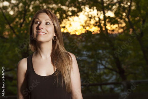 Young beautiful woman portrait sunset