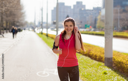 running, woman, healthy, fitness, runner, lifestyle, sport, female, girl, run, exercise, jogging, young, fit, training, people, person, beautiful, marathon, physical exercise, adult, active, outside, jogger, activity, nature, city, trail, 1, sporty, athlete, youth, spring, flower, blossom, bloom, hand, phone, smartphone, earphones, listen, music, case, holder