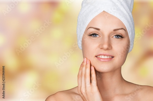 Young beautiful woman with towel on head