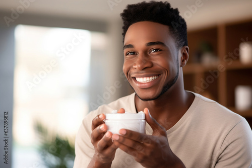 Young black man taking care of his skin with nourishing face cream