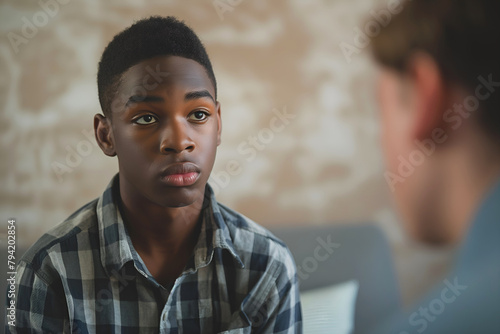Young Black Teenager Looking Into Eyes Of Teacher, Professional Photo, Education Advertising Photo, School Student