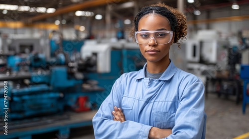 engineer, woman, factory, manufacturing, industry, men at work, confident, industrial, trade, engineering, occupation, professional, uniform, career, machine, technology, technician, diverse, serious, expertise, protection, manpower, workshop, production, job, african american, female, mechanical