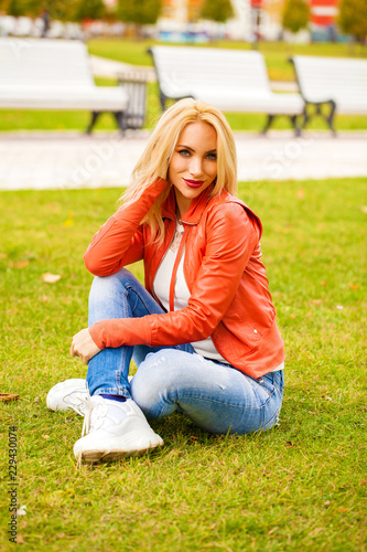 leaf fall, maple leaf, sitting, sit, fallen, leaf, yellow, gorgeous, model, smile, happy, park, forest, autumn, european, adult, glamour, outside, full, casual attire, people, 1, caucasian, female, fashion, cute, portrait, season, modern, lady, jean, rest, lifestyle, girl, young, woman, blond, fall, blue, person, beauty, cheerful, nature, full-length, pretty, sexy, street, style