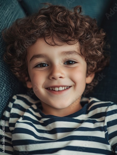 Young boy with curly hair smiling