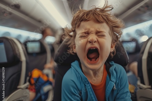 young boy, mouth open, aeroplane, upset, children, tantrum, surprise, emotion, travel, transportation, flight, flying, aviation, passenger, emotional, distress