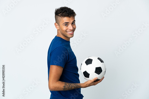 brazilian, adult, athlete, athletic, background, ball, brunette, casual attire, competition, cool, football, game, guy, photogenic, isolated, leisure, male, man, model, people, person, player, playing, portrait, professional, slim, sport, activewear, studio, training, young, youth, man, soccer