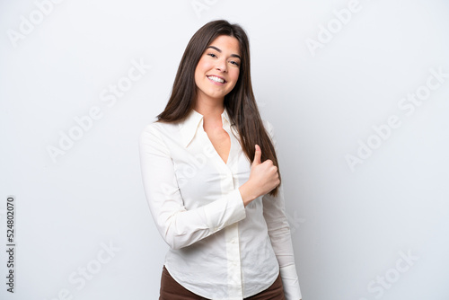 Young Brazilian woman isolated on white background giving a thumbs up gesture