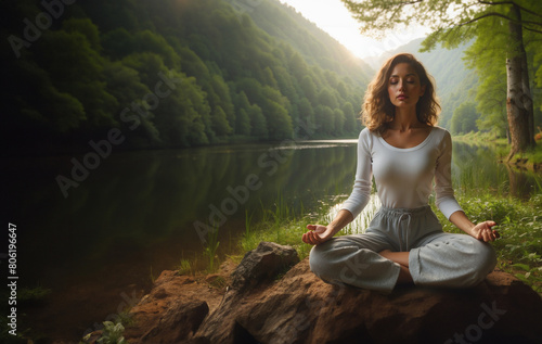yoga, woman, meditation, summer, relaxation, wellness, peace, practice, asana, lotus, meditating, harmony, spiritual, zen, mind, calmness, well-being, caucasian, outdoors, mindfulness, relaxing, spirituality, nirvana, day, meditate, chakra, buddhist, closed eyes, crossed legs, brunette, green, nature, forest, exercise, relax, lifestyle, healthy, person, landscape, sitting