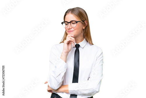 businessperson, happy, laugh, people, looking, chroma, boss, youth, young, person, happiness, side, background, portrait, concept, female, woman, smile, look, eye, adult, lateral, blond, isolated, girl, head, men at work, face, business, manager, work
