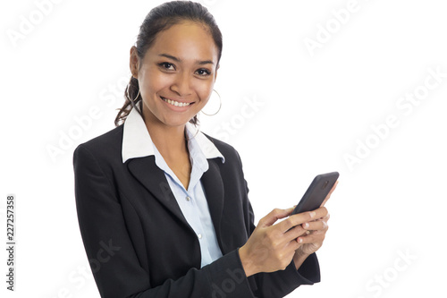 adult, asian, attractive, background, business, businesswoman, casual attire, concept, expression, expressive, fashion, female, friendly, contraption, gesture, indoor, isolated, life, lifestyle, mobile phone, modern, people, person, portrait, profession, professional, smartphone, smile, smiling, studio, style, technology, texting, uniform, white, woman, men at work, young