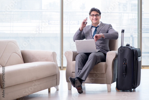 Young businessman in airport business lounge waiting for flight