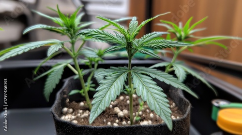 cannabis, plant, growth, indoor, gardening, nature, leaf, dirtied, green, pot, cultivation, agriculture, environment, natural, flora, home, herbal, organic, fresh, wellness, health, beauty, texture, closeup, photo, sharpened, vibrant, life, sunlight, nurturing, care, botany, ecosystem, sustainable, germ bud, thrive, greenery, hobby, relaxation, aesthetic, calmness, development, species, horticulture, potting, root, arrangement, visual