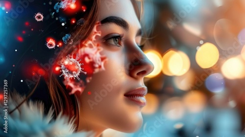 young, caucasian, female, digital, virtual, imagination, face, bokeh, technology, futuristic, closeup, concept, cyber, light, dream, tech, innovation, glowing, particle, biotechnology, creativity, vision, element, beauty, future, science fiction, fantasy, sharpened, inspiration, connection, surreal, artistic, winter, profile, dreamy, enhancement, neural, thought, interaction, aethereal, earth, transformation, life events