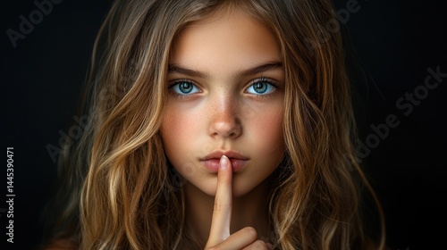 girl, quiet, gesture, hair, background, young, caucasian, children, long, eye, finger, lip, expression, shh, portrait, serene, brunette, innocence, calm, thoughtful, mysterious, beauty, gaze, solitude, silence, face, peaceful, emotion, delicate, whisper, soft, sharpened, intense, dark, closeup, natural, subtile, gentle, contemplative, youth, calmness, coiffure, elegant, simplicity, glance, introspective