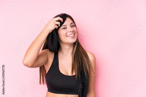 isolated, active, arm, attractive, beauty, black, body, calm, care, caucasian, club, cute, energy, european, exercise, female, figure, fit, fitness, girl, gym, happy, health, healthy, holding, lifestyle, model, nourishment, person, pink, portrait, pose, power, pretty, shape, slim, smile, sport, sporty, straight, strong, studio, perspiring, towel, training, vitality, white, woman, physical exercise, young