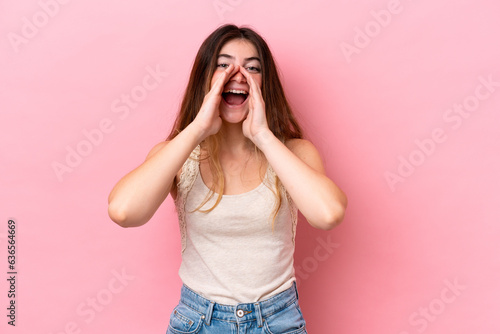 girl, woman, people, person, female, woman, attractive, beauty, beautiful, youth, young, adult, curly, pretty, 1, portrait, caucasian, spanish, coiffure, background, isolated, wall, colours, colourful, pink, emotion, mouth, yell, talking, scream, expression, concept, sound, shout, shouting, loud, message, voice, talk, communication, front
