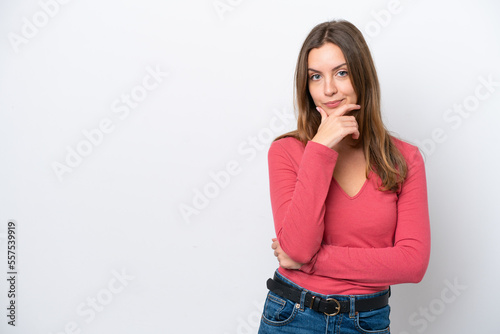 girl, woman, people, person, female, woman, lady, attractive, beauty, pretty, beautiful, youth, young, adult, brunette, caucasian, 1, portrait, cute, hair, background, isolated, white, blank, looking, up, thinking, wonder, question, confused, imagining, imagine, smart, clueless, pensive, thinks, concept, expressing, expression, idea, solution, thoughtful, thought