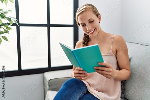 young, caucasian, woman, female, blond, adult, person, beautiful, portrait, attractive, happy, confident, smile, lifestyle, expression, positive, joy, smiling, enjoy, fun, funny, sitting, sofa, relax, relaxing, rest, resting, comfort, comfortable, cosy, relaxed, read, reading, book, literature, cognition, smart, intelligent, study, studying, home, house, apartment, room, living room, indoor, indoor, interior, background