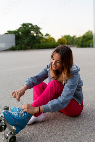 active, activity, adult, apparel, asphalt, beautiful, cheerful, clothing, colourful, dawn, exercise, fun, ground, happiness, happy, hobby, leisure, lifestyle, outdoors, pavement, person, portrait, practice, prepare, pretty, recreation, roller, rollerskate, to sit, sitting, skate, skate, sk8, smile, sport, sporty, street, training, urban, vintage, wheel, working out, young, youth
