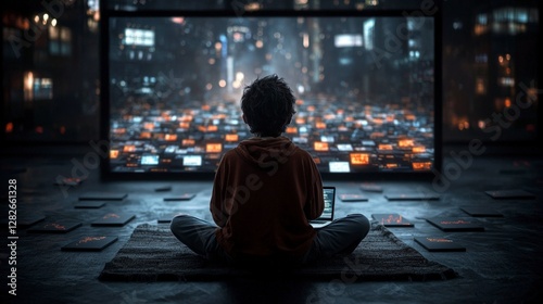Young Coder Futuristic Data Center Digital Ocean Tech Innovation Laptop Screen
