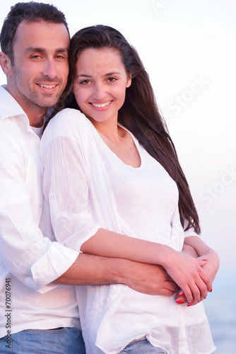 young couple on beach have fun