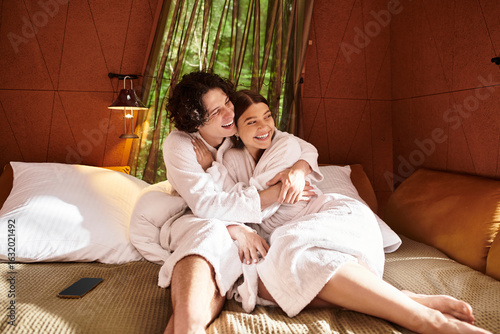 Young couple enjoying each others company in a cozy getaway setting while relaxing together