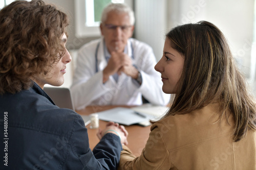 health, health care, man, senior, doctor, couple, young people, appointment, surgeon, practitioner, office, uniform, indoor, 1, person, prescription, pregnancy