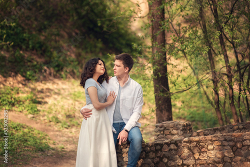 Young couple in love outdoor.Couple posing in summer in field.Smiling couple in love outdoors