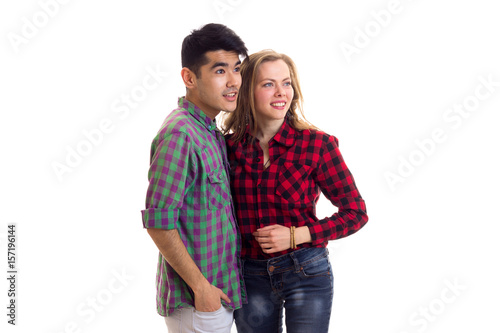 Young couple in plaid shirts