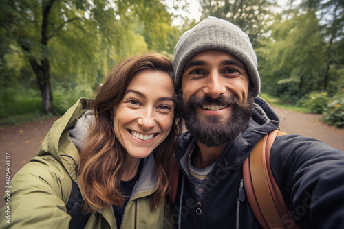 lover, man, woman, selfie, portrait, park, forest, natural, human relationships, beard, happy, laughing, backpack, fall, spring, sympathetic, lifestyle, love, together, couple, smile, beauty, happiness