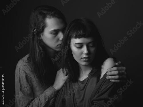 couple, woman, love, man, human relationships, boyfriend, black-and-white, lover, girl, kiss, passion, girlfriend, valentine, portrait, hug, sensual, feeling, young, female, romantic, candid, care, photogenic, studio, happy, lovely, people, shadow, together