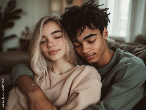 couple, love, hugs, peaceful, cosy, home, relaxing, relaxation, intimacy, affection, happy, happiness, serene, together, human relationships, bond, connection, warmth, trust, calm, comfort, sofa, interior, calmness, young, romantic, gentle, harmonious, serenity, closeness, tranquil, sitting, afternoon, soft, loving, casual attire, homelike, friends, friendship, embracing, lovebirds, lifestyle, desire, tenderness, calming, care, attachment, affectionate