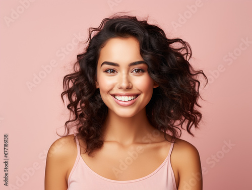 woman, curly, hair, smiling, pastel, background, young, studio, 1, person, beautiful, ai, lilac, ia, generative, brunette, beauty, elegant, style, pretty, lady, face, isolated, smile, gorgeous, elegance, girl, happy, attractive, posing, fashion, portrait, coiffure, looking, lifestyle, female, trendy, model, happiness, adult, stylish, teeth, make up, cheerful, dark, brown, eye
