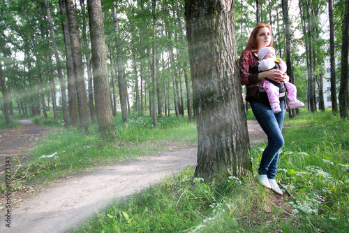 young family on a walk in the park sunshine