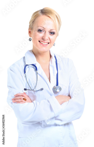 young female doctor portrait, isolated on white
