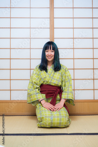 asian ethnicity, culture, door, life events, holiday, inn, japan, japanese culture, japanese ethnicity, japanese style, lodging, one person, private room, relax, relaxing, rest, to sit, tatami, timber, hakone, travel, traveler, woman, young adult, missy, yukata, kimono