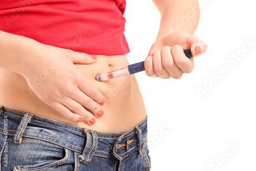 Young female injecting insulin in her abdomen