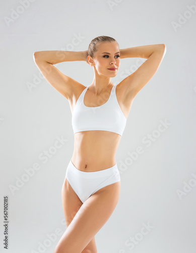 woman, girl, massage, cellulite, spa, weight loss, female, blond, skin, care, skincare, health, health care, studio, beautiful, caucasian, concept, rejuvenate, young, attractive, natural, hand, tan, body, leg, swimwear, sport, diet, shape, fit, sexy, white, bikini, epilation, clean, fresh, honed, sporty, summer, swimwear, healthy, slender, person, happy, smiling, underclothing, lingerie, grey background, fashion model, posing