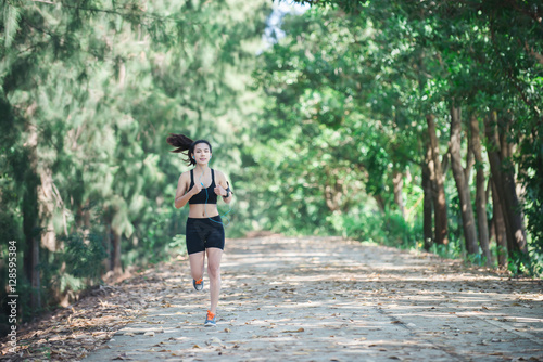 active, activity, asian, attractive woman, beautiful, carefree, copy space, excited, exercise, female, fit, front view, full body, full-length, girl, green, happy, healthy, healthy lifestyle, japanese, jogger, lifestyle, move, nature, park, pathway, people, person, pretty, real people, recreation, runner, running, sunlight, sunshine, trail, vitality, white, physical exercise, young