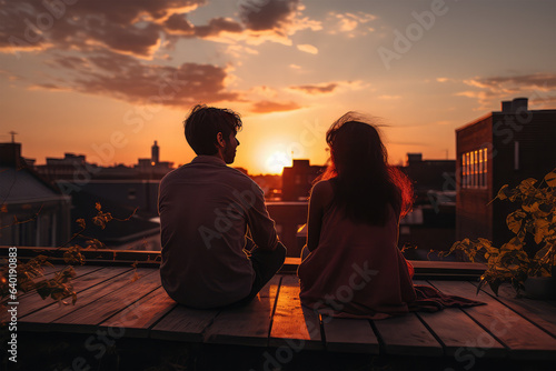 woman, sitting, male, lifestyle, rooftop, sunset, evening, looking, outside, outdoors, friends, people, leisure, happiness, life, enjoying
