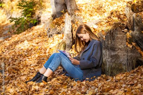 person, education, portrait, girl, lifestyle, nature, autumn, beautiful, draw, learning, drawing, crayons, teenage, female, happy, 1, sitting, woman, beauty, park, teenage, schoolgirl, artist, caucasian, model, outside, attractive, fashion, full body, rest, sit, sketchbook, while, background, russian, gold, autumn foliage, fallen leaves, forest, album, homework, note, student, write, young, blond