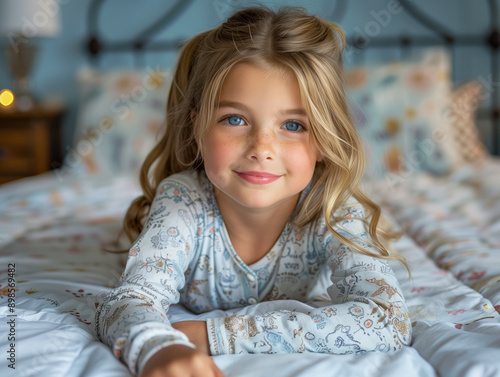young, girl, laying, bed, wearing, person, children, childhood, horizontal, female, lifestyle, indoor, cute, pajama, small, innocence, one person, photo, sleeping, bedchamber, fun, hair, morning, cheerful, book, comfortable, cosy, reading, sleep, toddler, youth, adorable, bedding, bedtime, color image, cosy, funny, happiness, interior, lying down, nap, stretching, toy, blanket, care, caucasian, happy, home
