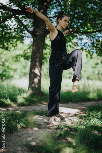 tree, wellness, green, scenic, serene, practice, lifestyle, balance, activity, body, poise, beauty, healthy, meditation, female, nature, graceful, yoga, performing, artistic, exercise, training, strength, dance, fitness, flexibility, woman, forest, freedom, modern dance, young, movement, girl, routine, calmness, elegant, healthy lifestyle, form, concentration, grace, peaceful, natural, outdoors, expression