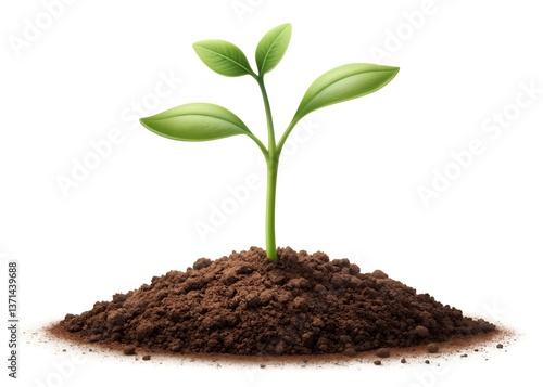 Young Green Seedling Growing from Soil – Fresh Sprout Isolated on a White Background
