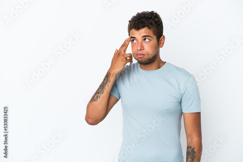 Young handsome Brazilian man isolated on white background with problems making suicide gesture