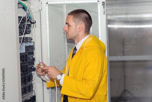 man, technology, business, cyberspace, fashion, computer, person, girl, network, server, connection, information, people, system, professional, center, room, service, hardware, datum, tech, engineer, businessman, rack, manager, high, industry, backup, solution, cable, security, database, lan, datacenter, wire, male, digital, caucasian, work, web, laptop, suit, firewall, attaching, receiver, television, high technology, support