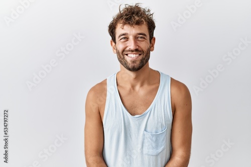 Young handsome man standing over isolated background with a happy and cool smile on face. lucky person.