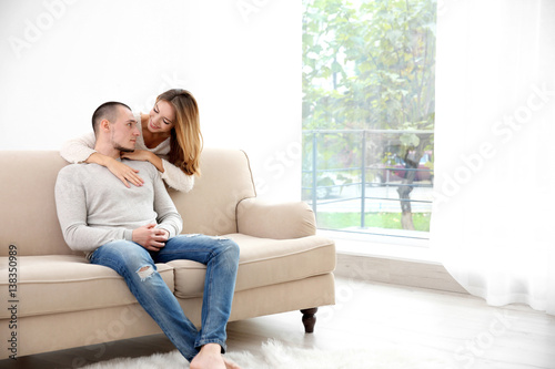 Young happy couple together at home